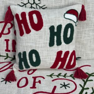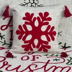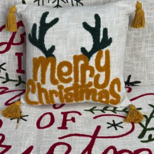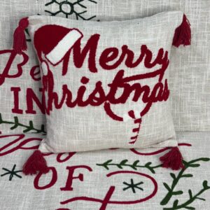Merry Christmas Tufted Cushion Cover – 16×16 Inch Cotton Slub | Festive Embroidered Design | Holiday Decor Accent | Soft & Durable with Concealed Zipper (Set of 1)