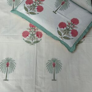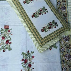 Urban Space 300 TC 100% Cotton Jaipuri Handblock Bedsheet for Double Bed, King Size Bed Sheet with Pillow Covers (95x 108 Inches)