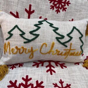 Merry Christmas Tufted Cushion Cover – 12X20 Inch Cotton Slub | Festive Embroidered Design | Holiday Decor Accent | Soft & Durable with Concealed Zipper (Set of 1)