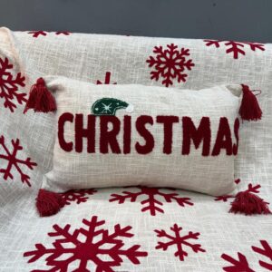 Merry Christmas Tufted Cushion Cover –12X20 Inch Cotton Slub | Festive Embroidered Design | Holiday Decor Accent | Soft & Durable with Concealed Zipper (Set of 1)