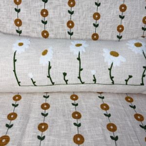 Embroidered Linen Slub Lumbar Cushion Cover – Textured Decorative Pillow Cover for Sofa & Bed